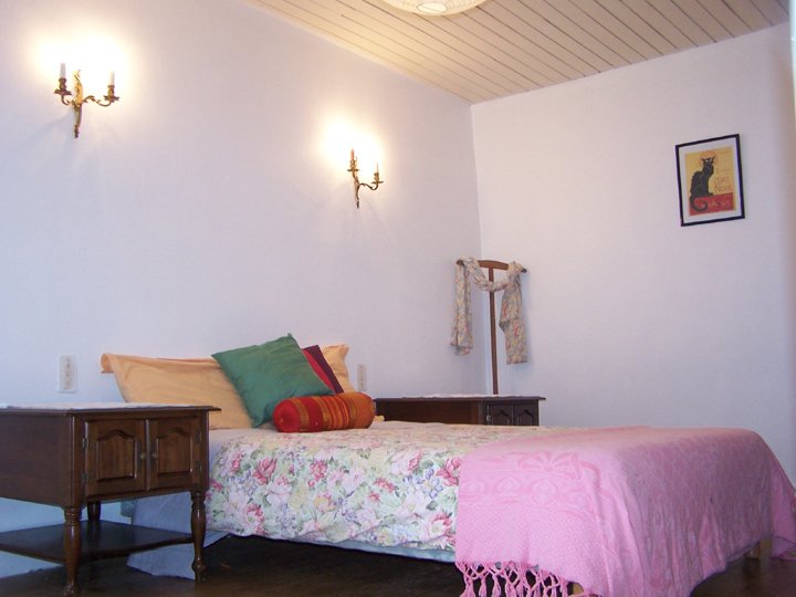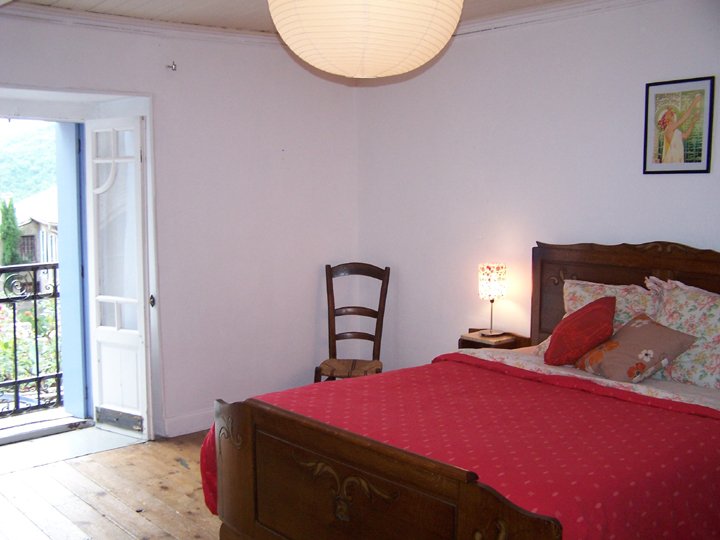 A 2BR (both double beds) with lovely, large fireplace in the eat-in kitchen and an attached patio, across the street from La Muse. Rooms are both spacious and bright. There is a shower in one bathroom and a bathtub in the other. Two toilets. No WIFI, few appliances; simple accommodations but charming and comfortable.